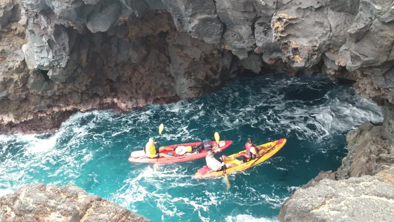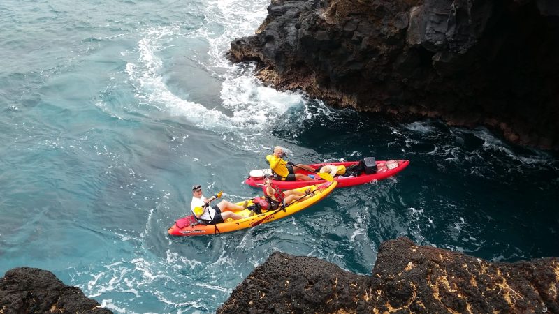 We offer 2-hour kayak tours guiding you along the Kona coast, passing by the cliffs to a wonderful spot, perfect for those who want a shorter experience.